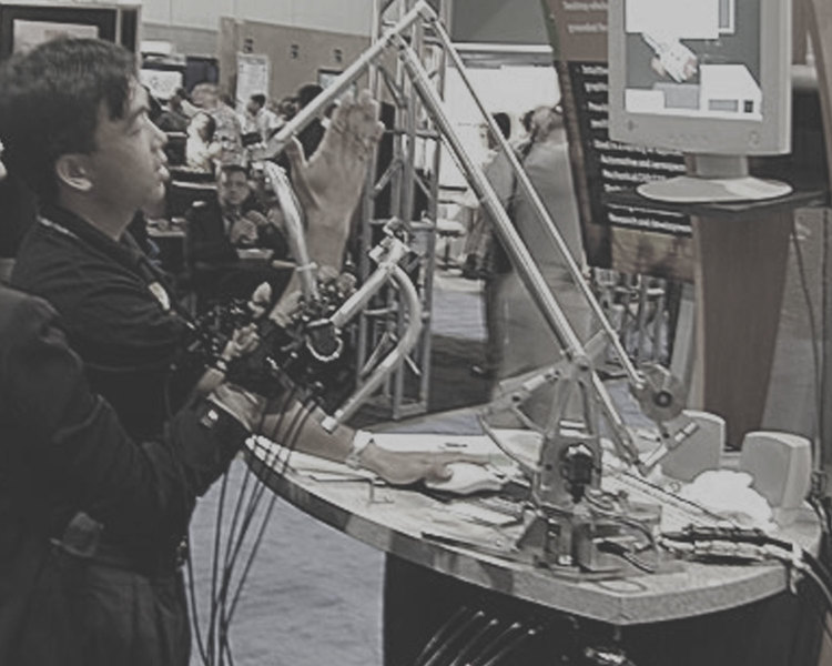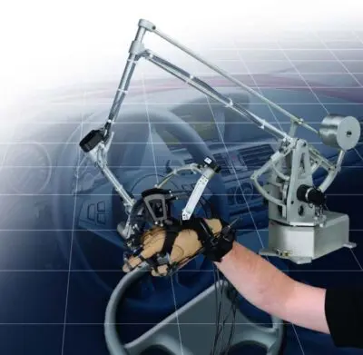 Using the CyberForce system together with the CyberGrasp exoskeleton, you can literally “hang your hand” on a virtual steering wheel, sense weight and inertia while picking up a “heavy” virtual object, or feel the impenetrable resistance of a simulated wall. The CyberForce option allows you to intuitively explore and interact with simulated graphical objects via the most natural interface possible – the human hand.