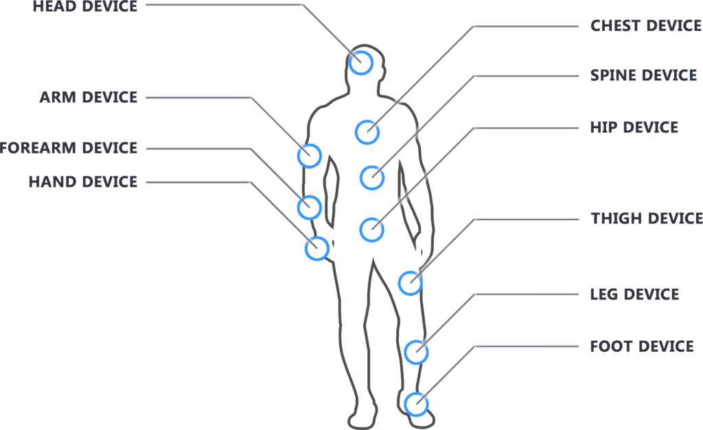 Each Movit G1 device has been designed to be universal and applicable on the main parts of the body. Through the wearable holders and a quick coupling / release system it is possible to wear the devices easily.