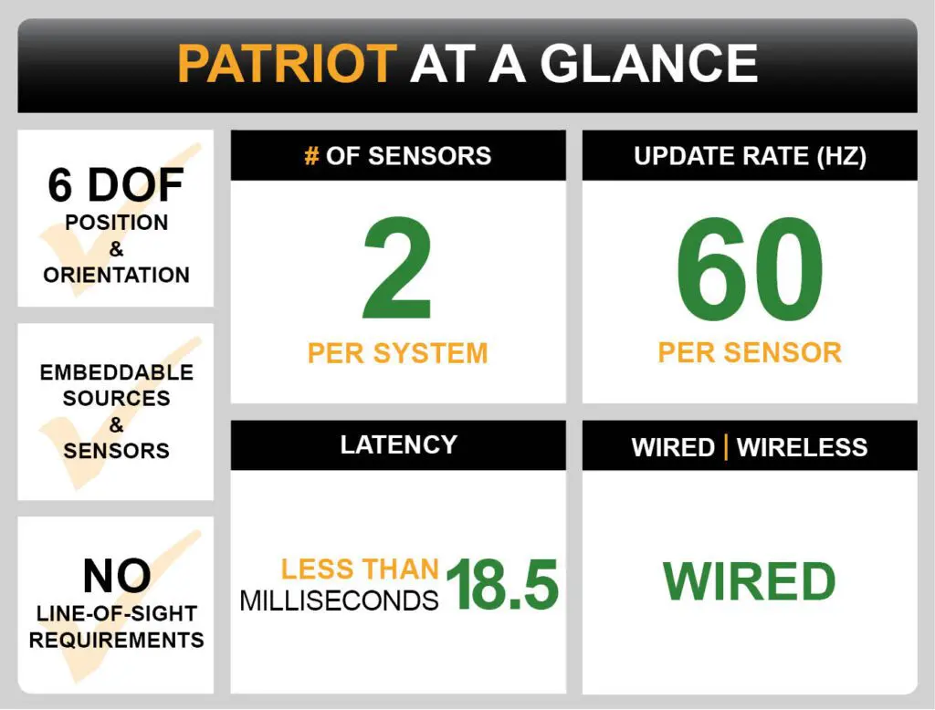 If your application calls for full 6DOF wireless tracking, PATRIOT™ WIRELESS provides consistent, high-quality tracking while being completely untethered.