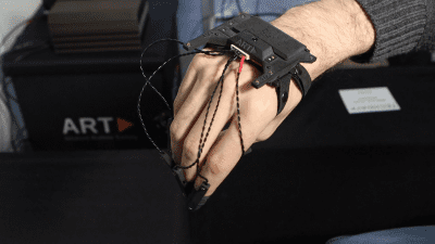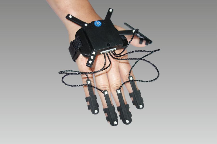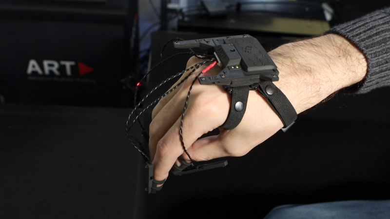 ARTs Fingertracking targets use small and robust active markers, allowing a compact design with higher wearing comfort than the gloves you typically find in VR setups.