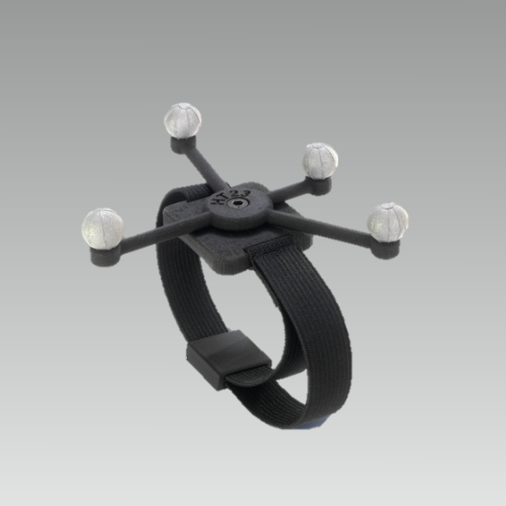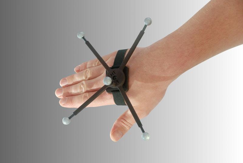 This hand target is designed for hand tracking in a two-camera tracking system. Its large size allows the user to make almost any movement with the hand without producing any occlusions. Available models: LHT1 and LHT2.