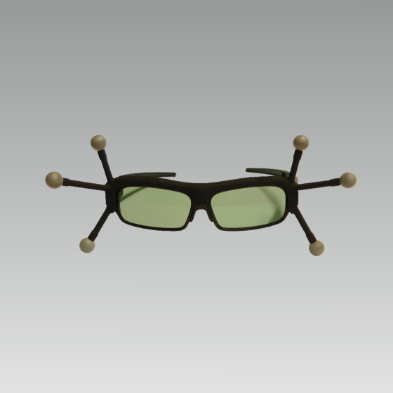 For head tracking in passive or active stereo systems, tracking targets must be affixed to the stereo glasses. ART offers lightweight standard targets as well as several adapted targets (e.g. clip-on) for a range of commercially available stereo glasses.